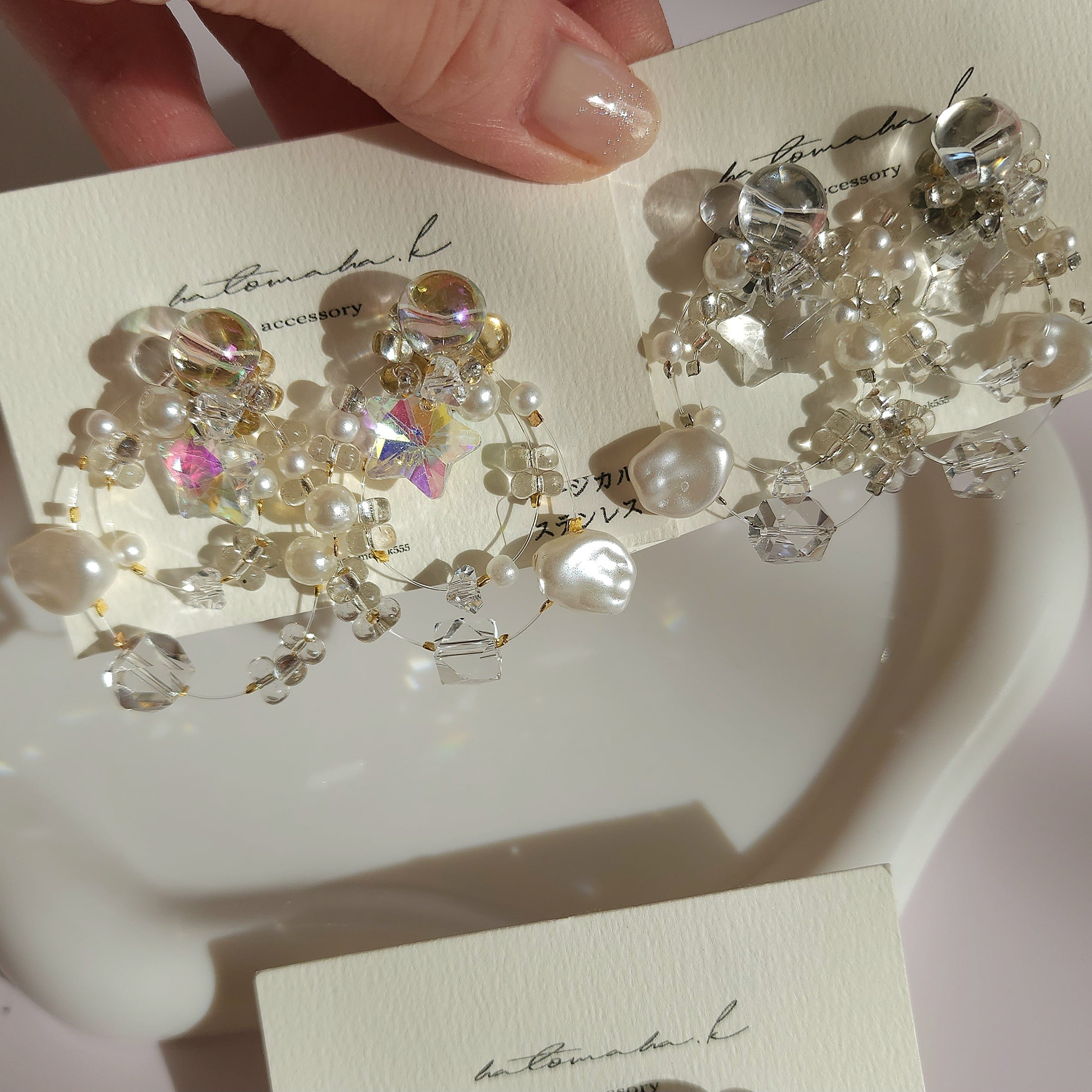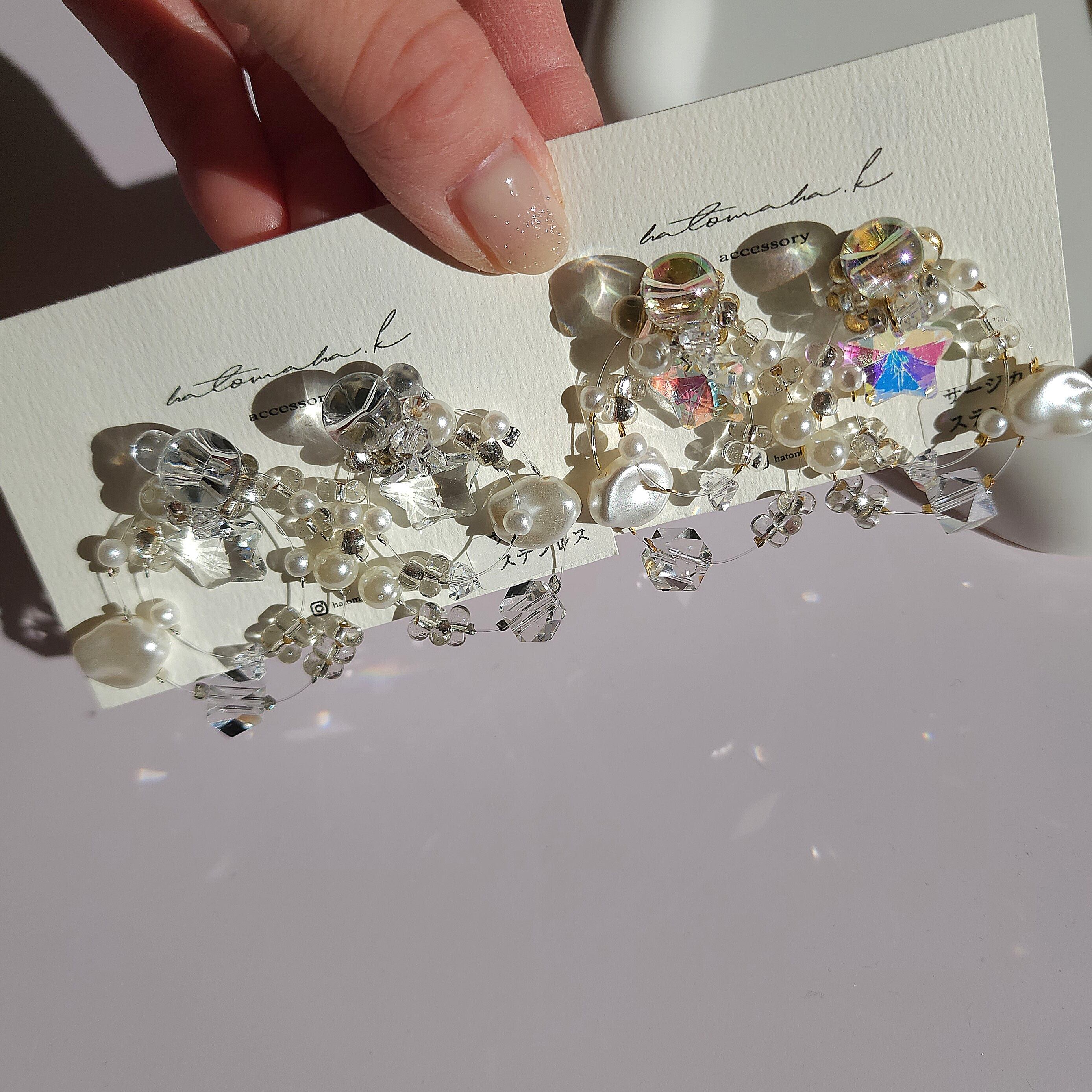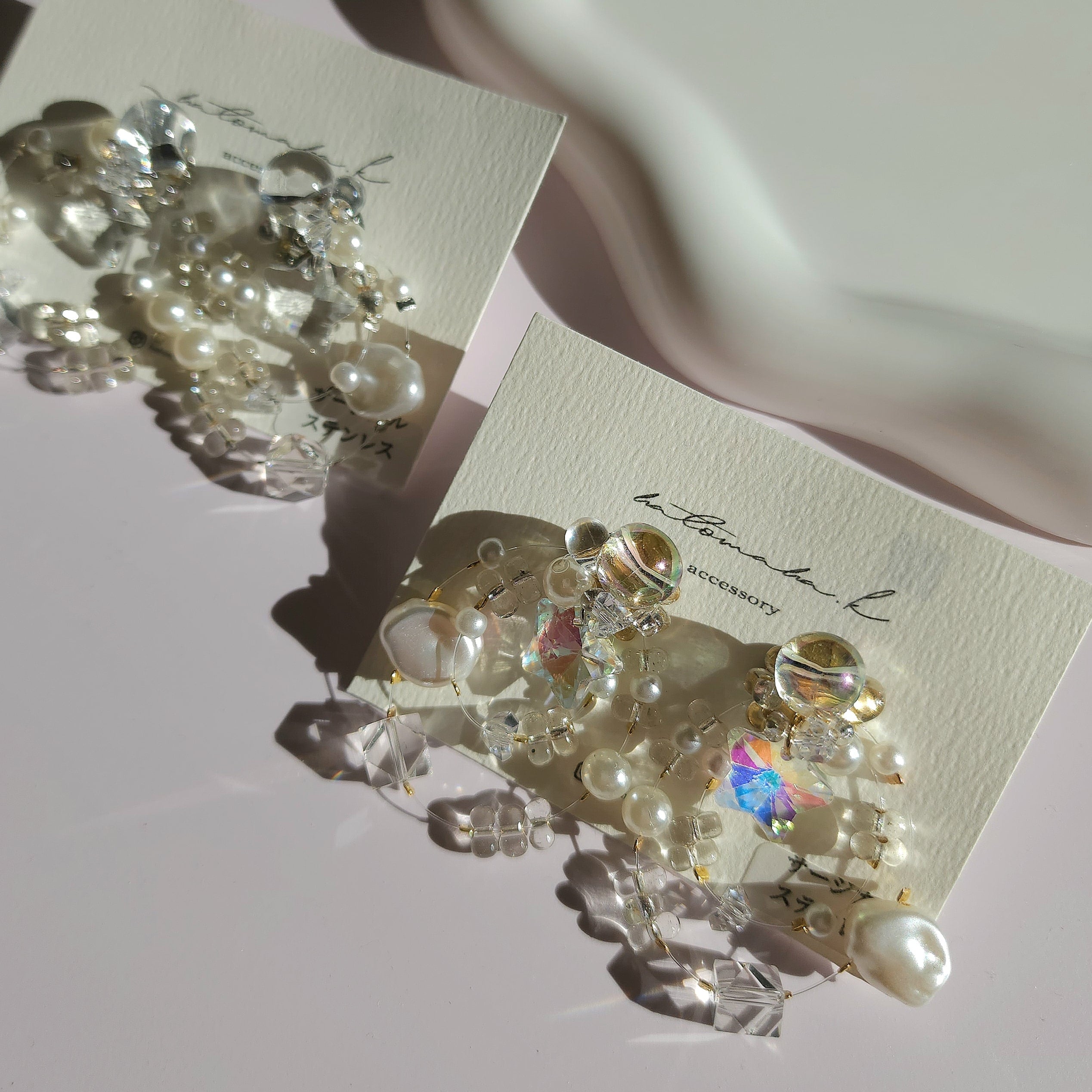 繊細なガラスとパールが奏でる光のハーモニー。